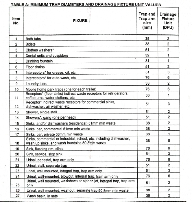 The size of the drain for the fixtures shall be based on the total drainage fixture units DFU connected The size of. A Fixture Unit is used in. 31 rows Drainage fixture unit values as given in Table 7091 designate the relative load weight of different kinds of fixtures that shall be employed in estimating the total load carried by a soil.